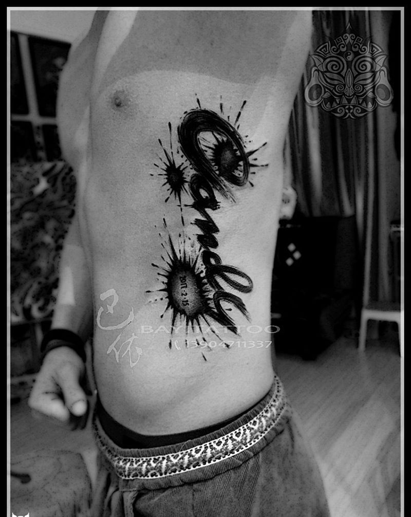 当前位置: 首页 >内蒙古呼和浩特市纹身店-巴依☆TATTOO纹身图案>肋骨水英文墨纹身图片_巴依内蒙古专业培训原创纹身图案