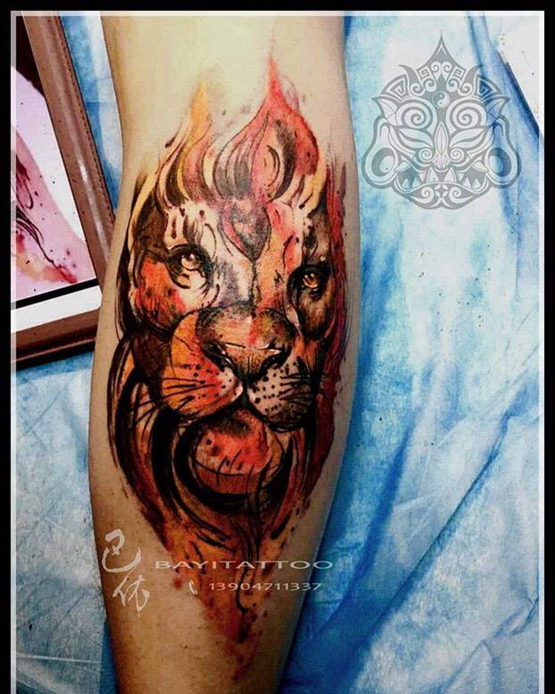 水墨狮子头纹身图片_巴依内蒙古专业培训国画纹身图案