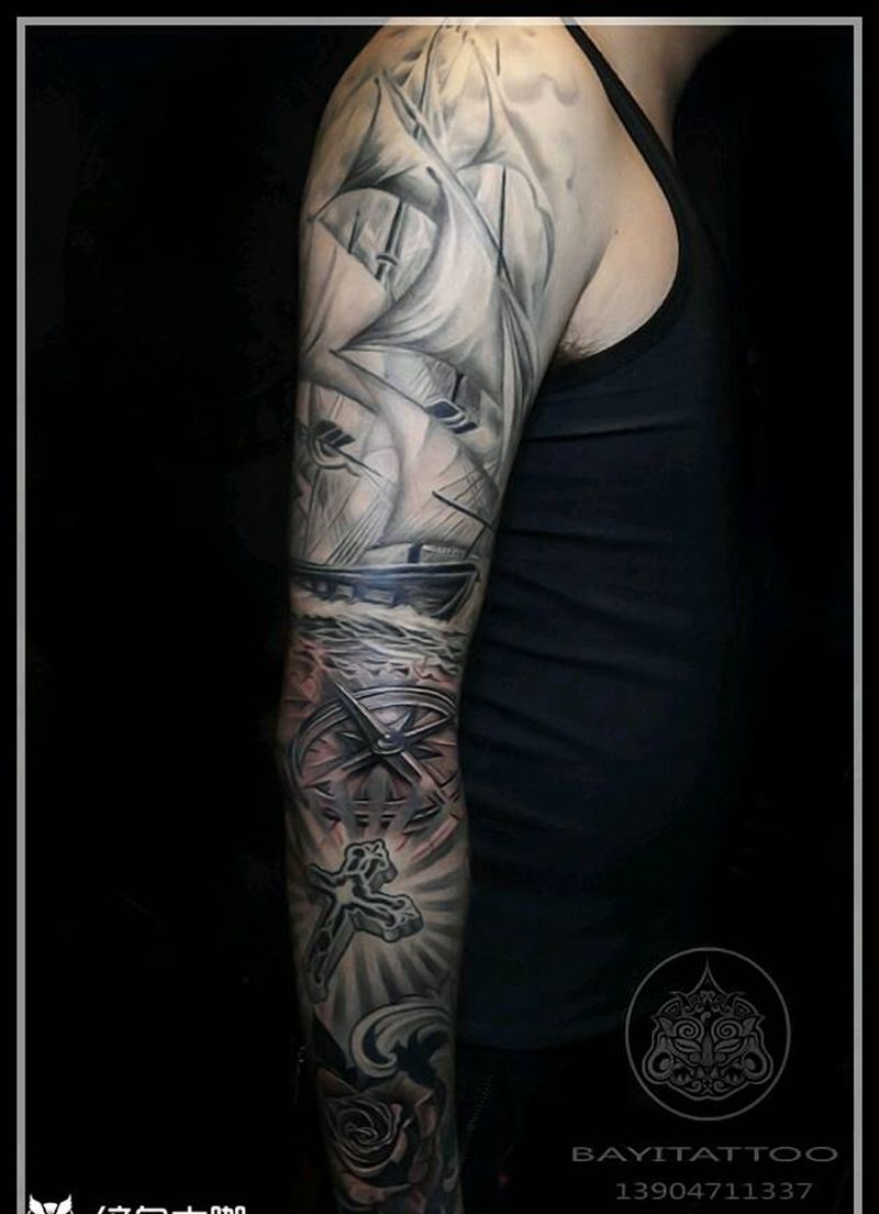 花臂纹身图片_手臂写实原创内蒙古纹呼市巴依成品纹身图案