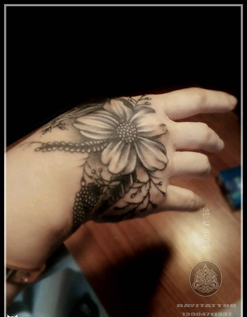 手背遮盖纹身图片_手部清新植物原创内蒙古纹呼市巴依纹身图案