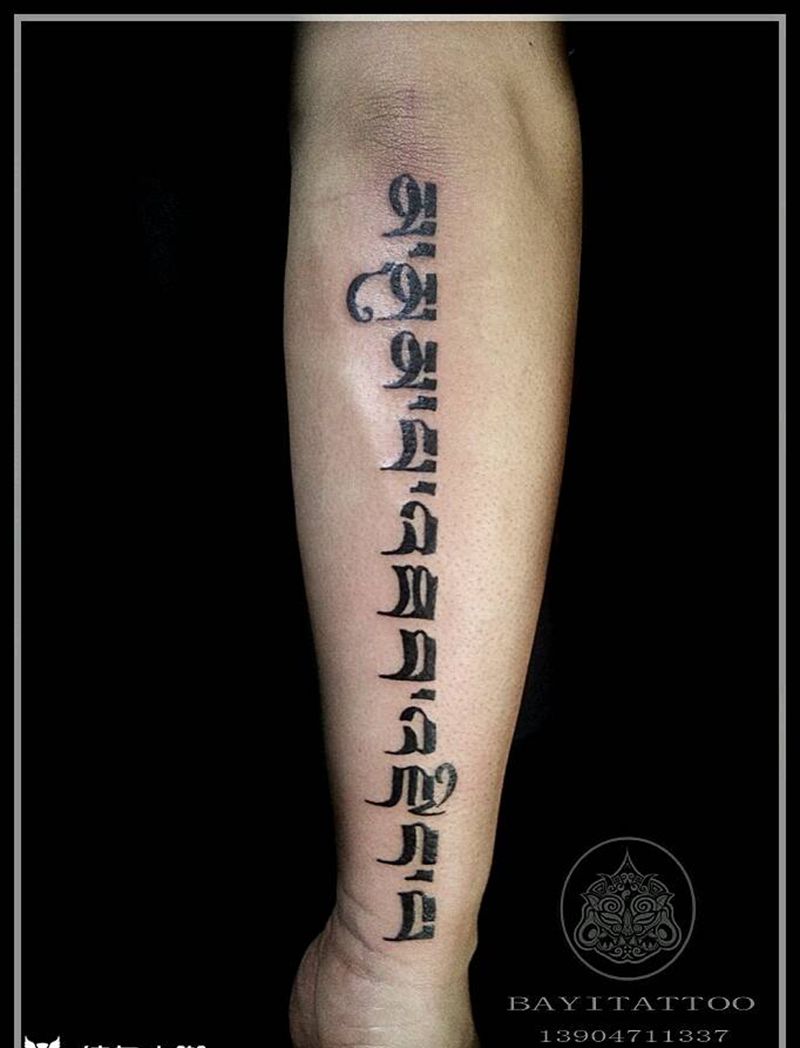 梵文→不屈的战士纹身图片_手臂字符内蒙古纹呼市巴依纹身图案
