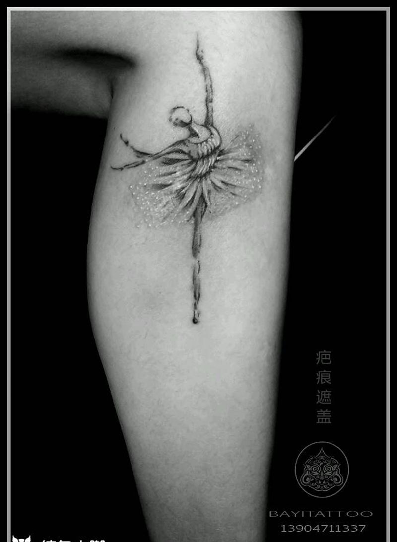 舞者→疤痕遮盖纹身图片_腿部清新内蒙古纹呼市巴依纹身图案