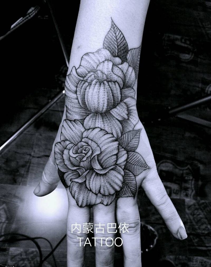 • 手背潮流时尚的玫瑰花眼睛纹身图案