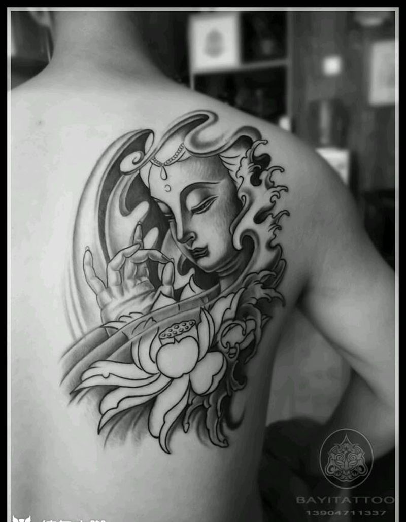 当前位置: 首页 >内蒙古呼和浩特市纹身店-巴依☆TATTOO纹身图案>半背佛纹身图片_背部新传统原创半背佛纹身图案