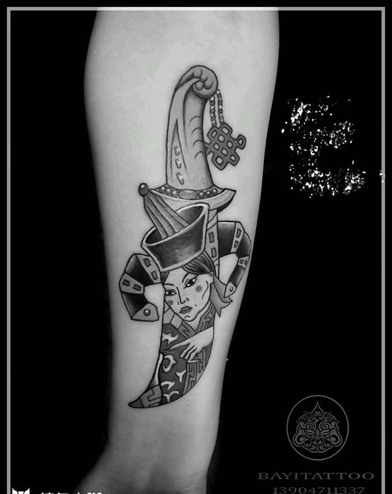 蒙古公主刀纹身图片_手臂New School蒙古元素纹身图案