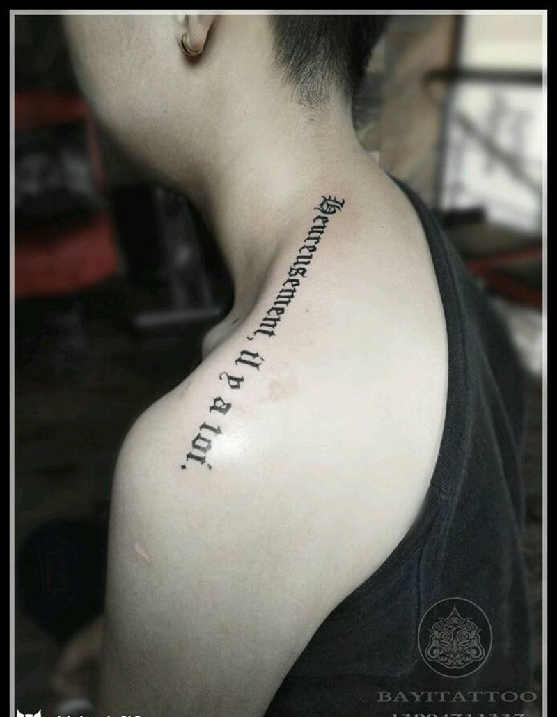 当前位置: 首页 >内蒙古呼和浩特市纹身店-巴依☆TATTOO纹身图案>哥特纹身图片_肩部花体字纹身图案
