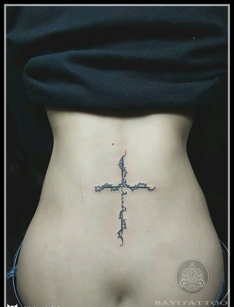 怪人十字架纹身图片_腰部图腾十字架纹身图案