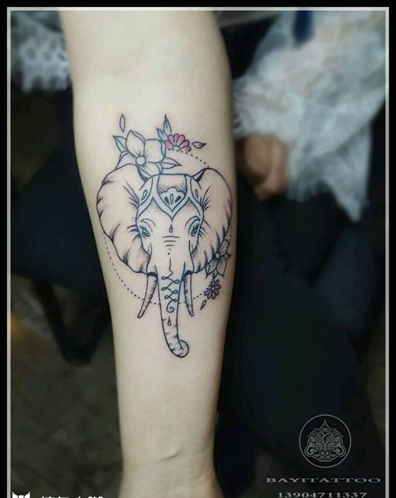 当前位置: 首页 >内蒙古呼和浩特市纹身店-巴依☆TATTOO纹身图案>小象神纹身图片_手臂几何象神纹身图案