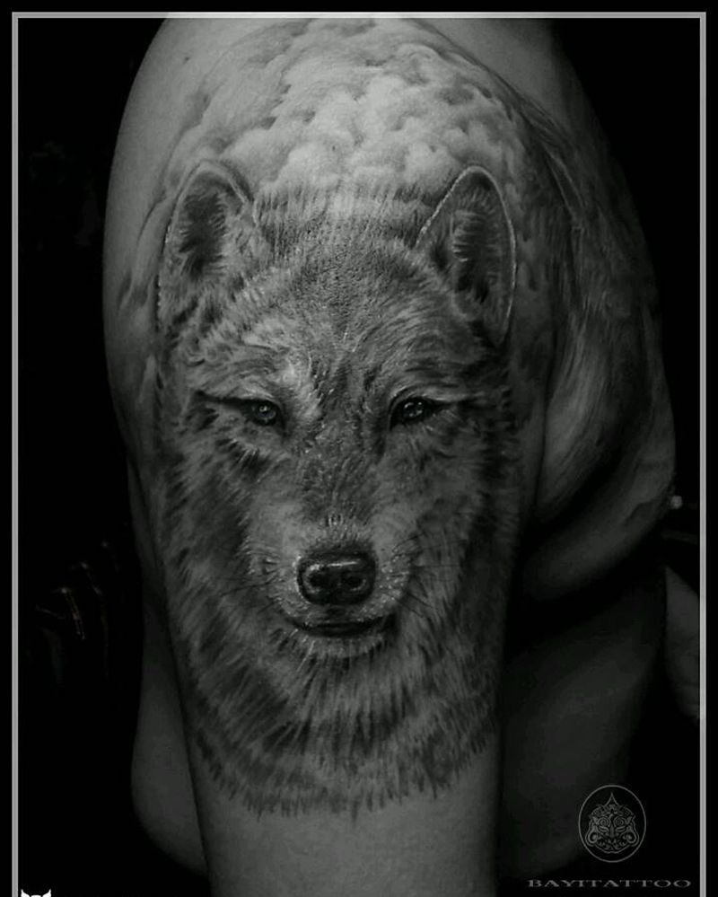 狼头纹身图片_手臂欧美写实狼头纹身图案