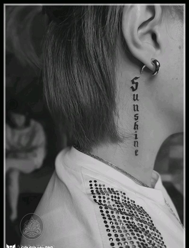脖子哥特字纹身图片_颈部花体字纹身图案