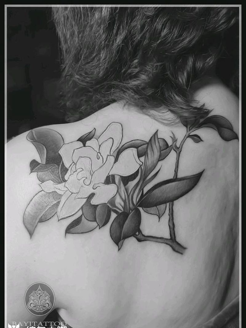 肩胛花纹身图片_肩部新传统肩胛花纹身图案