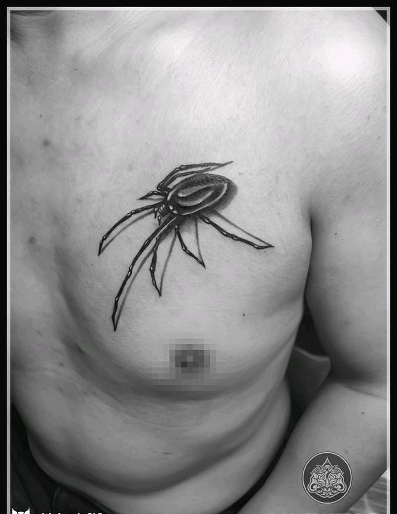 胸前黑寡妇纹身图片_胸部欧美写实小清新蜘蛛黑寡妇纹身图案