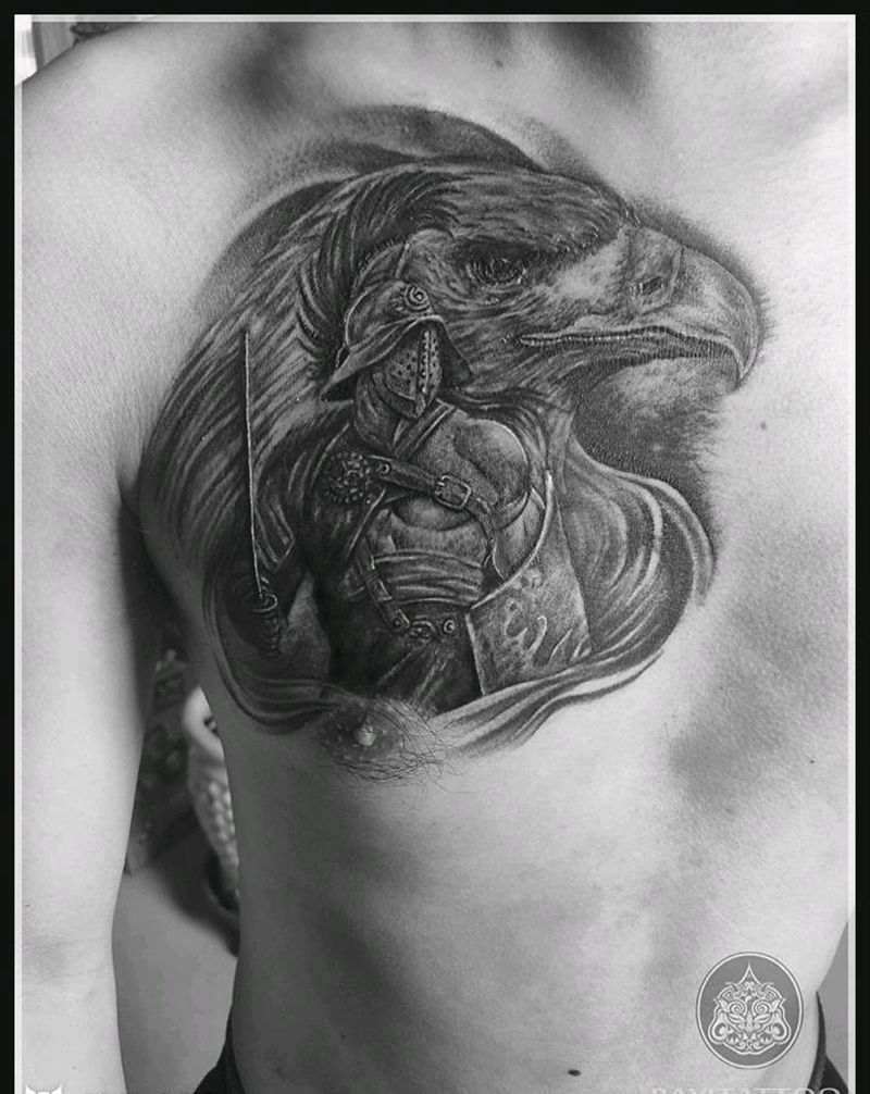 遮盖作品武士纹身图片_胸部欧美写实遮盖黑武士纹身图案