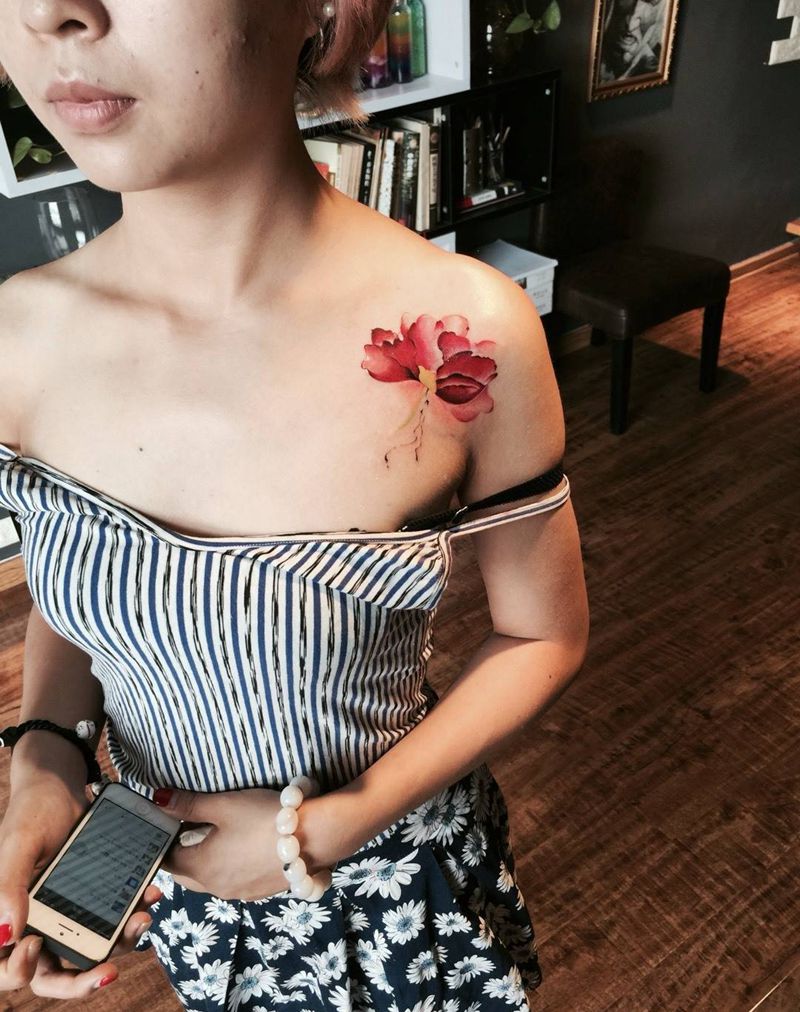 • 女性大花胸纹身_43张霸气漂亮的女性大花胸纹身图案作品
