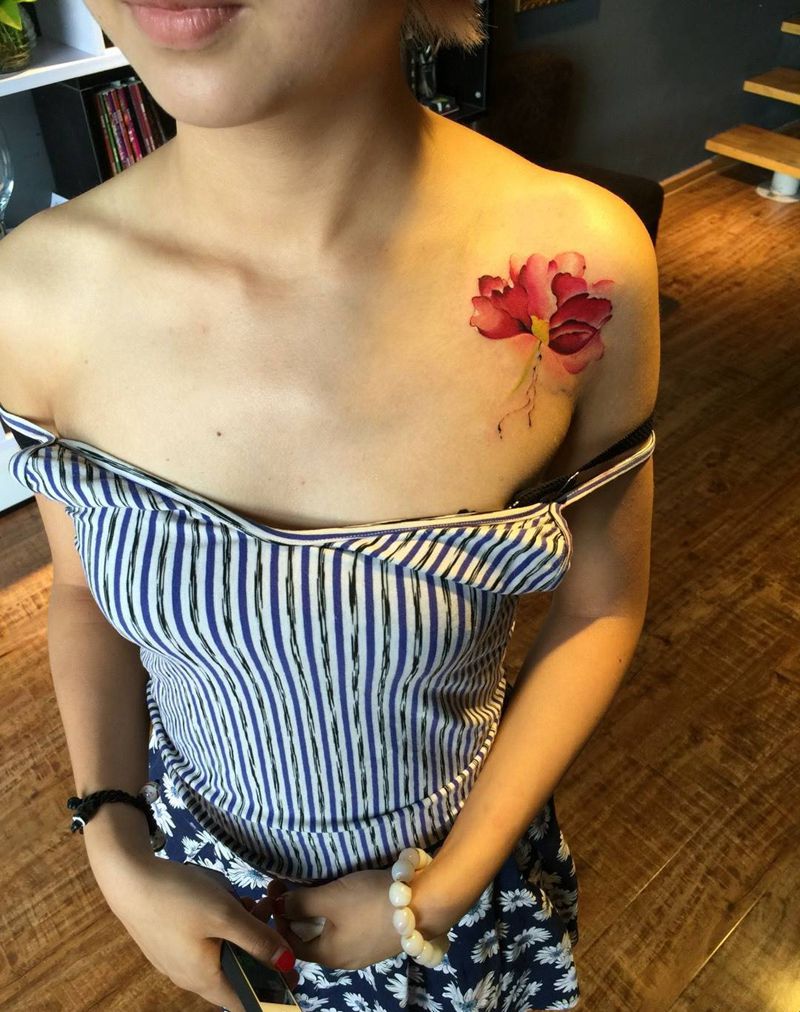 • 女性大花胸纹身_43张霸气漂亮的女性大花胸纹身图案作品