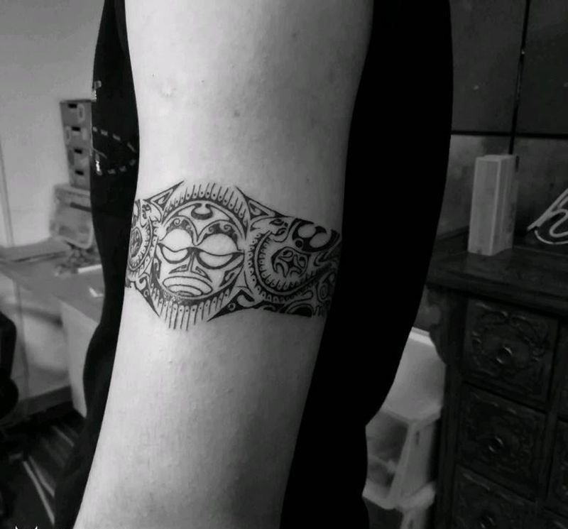 当前位置: 首页 >内蒙古呼和浩特市纹身店-灰社纹身工作室纹身图案>图腾臂环纹身图片_手臂图腾纹身图案
