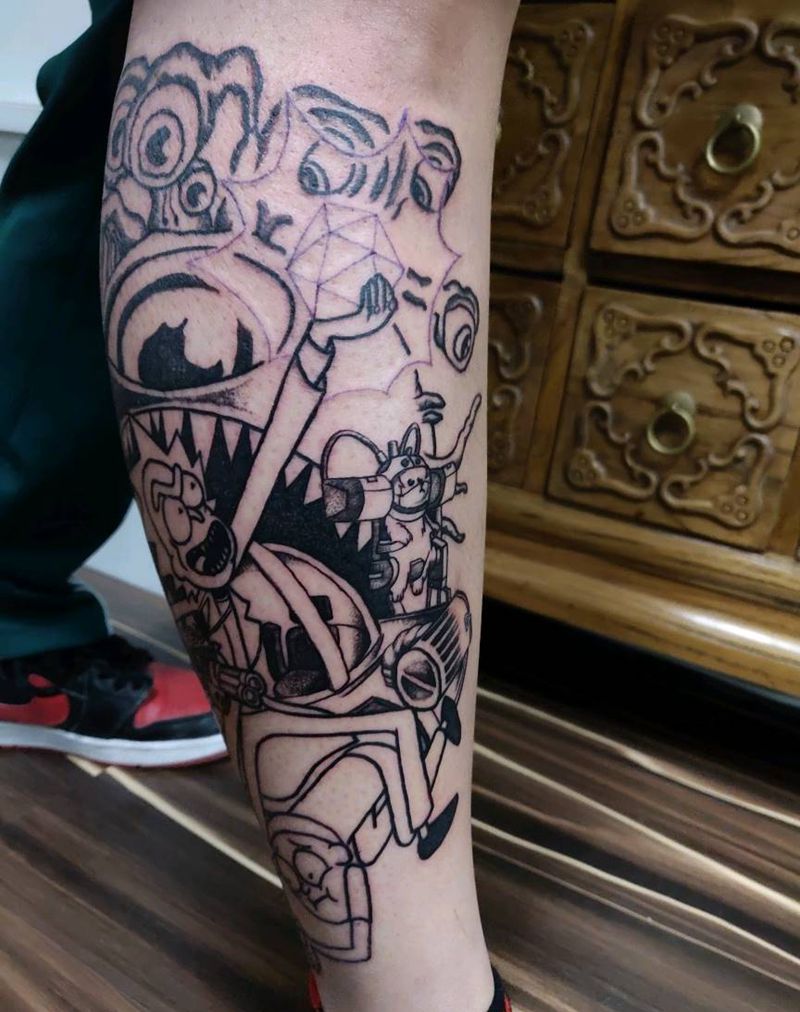• T包小腿吹火男+阿多福纹身图片_腿部老传统新传统吹火男阿