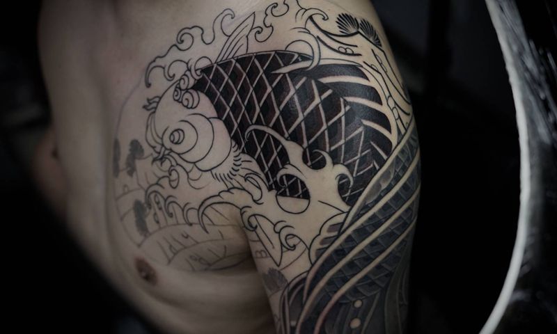 当前位置: 首页 >内蒙古呼和浩特市纹身店-玄青Tattoo纹身图案>半胛鱼进度纹身图片_手臂手部老传统新传统纹身图案