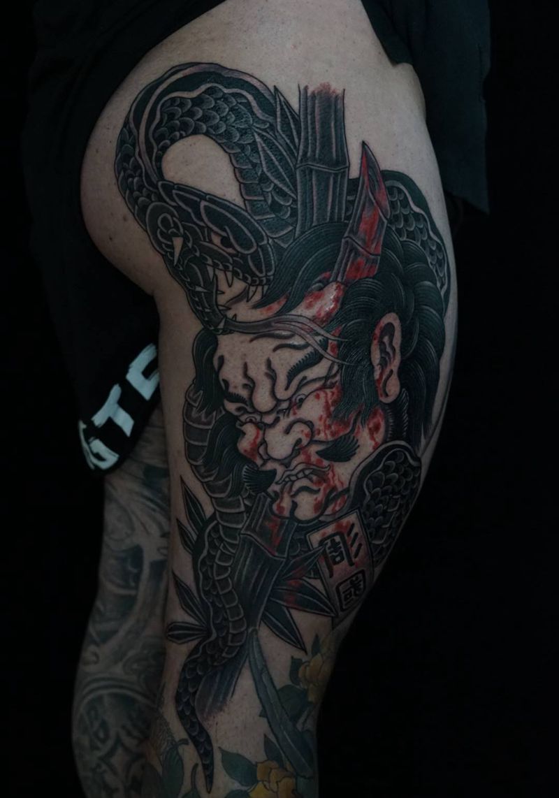 当前位置: 首页 >内蒙古呼和浩特市纹身店-玄青Tattoo纹身图案>生首作品纹身图片_腿部老传统纹身图案