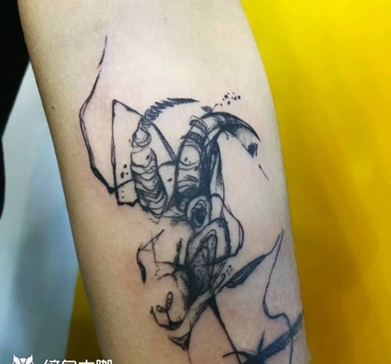 羊 胸 美人鱼纹身图片_手臂几何纹身图案
