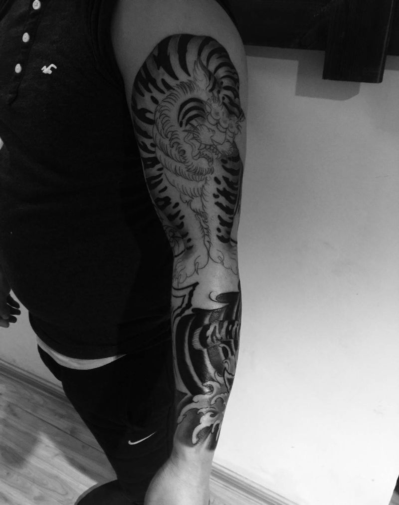 大猫进度 玄青tattoo纹身图片_动物传统手臂花臂刺青纹身图案