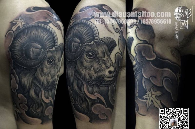 羊纹身图片_欧美传统成品动物原创鬼神宗教花臂刺青纹身图案