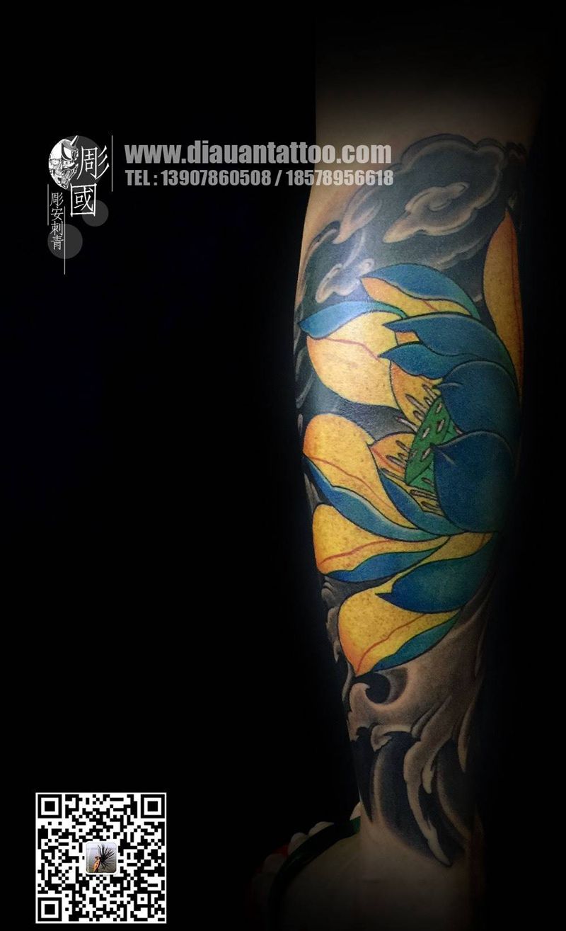 一组15张莲花纹身手