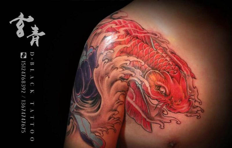 半甲鱼纹身图片_胸部手臂传统动物原创纹身图案