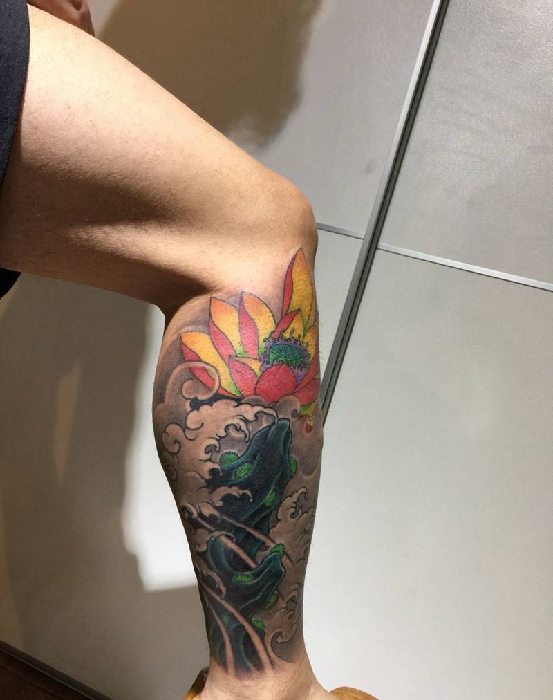 • T网红王老大花腿龙纹身图片_腿部新传统纹身图案