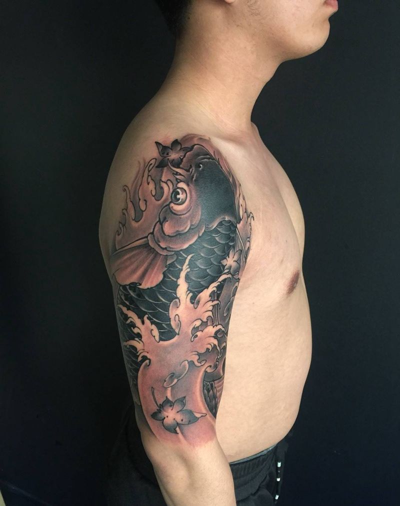 当前位置: 首页 >内蒙古呼和浩特市纹身店-玄青Tattoo纹身图案>鲤鱼纹身图片_传统动物原创手臂纹身图案