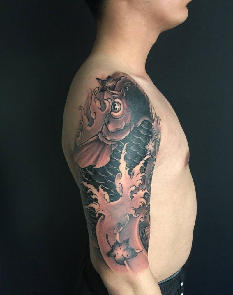 鲤鱼纹身图片_传统动物原创手臂纹身图案