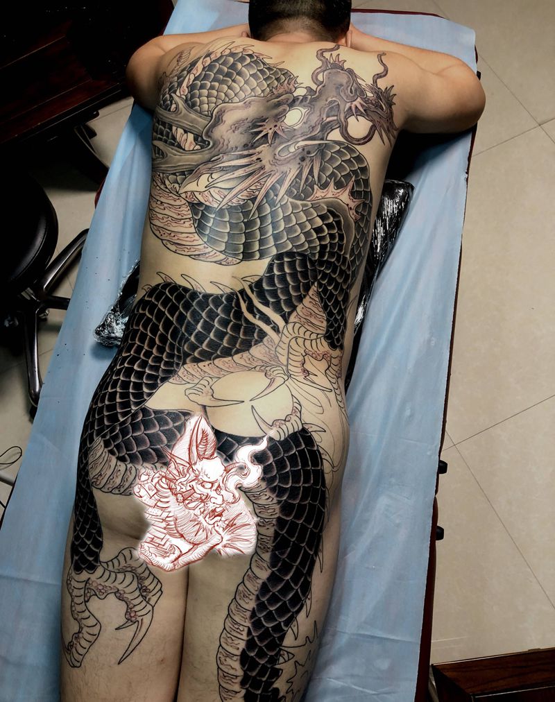 当前位置: 首页 >内蒙古呼和浩特市纹身店-玄青Tattoo纹身图案>龙背进度纹身图片_背部纹身图案