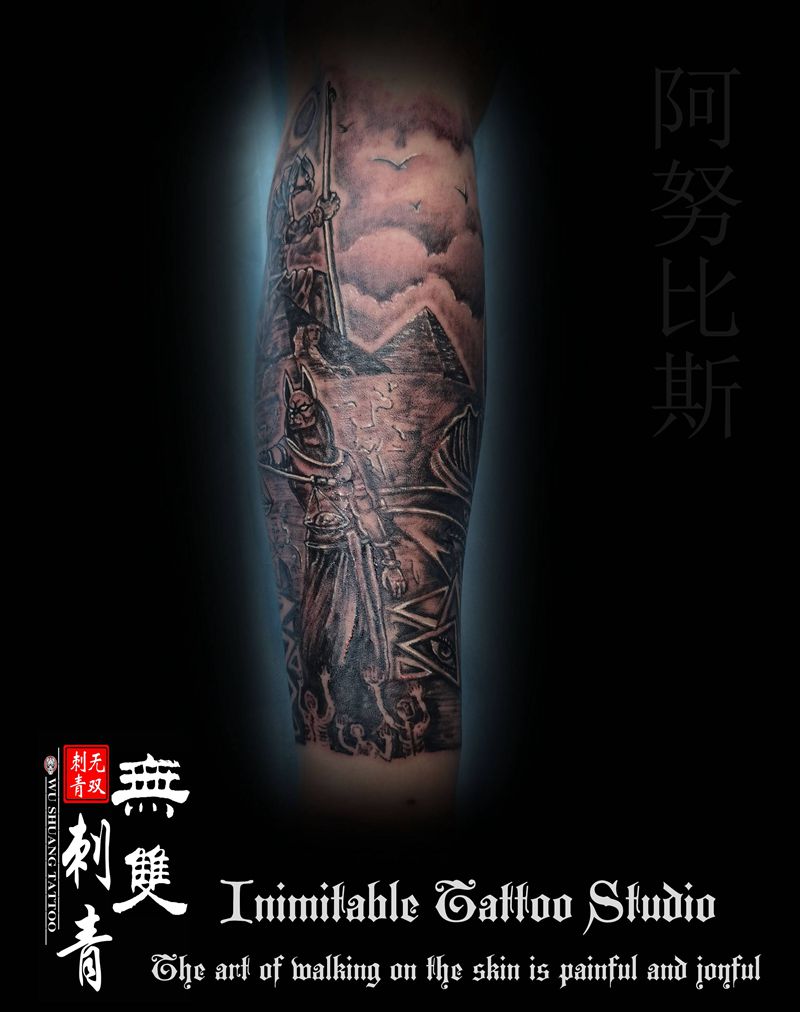 当前位置: 首页 >内蒙古呼和浩特市纹身店-亨利刺青工作室纹身图案>阿努比斯纹身图片_手臂纹身图案