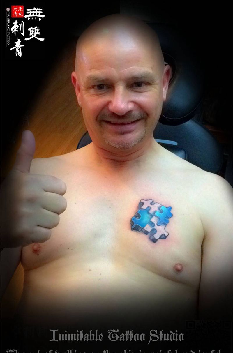 拼图半甲纹身图片_胸部手臂几何拼图纹身图案