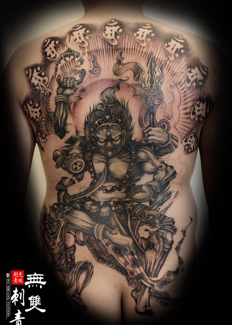 黑灰满背纹身图案