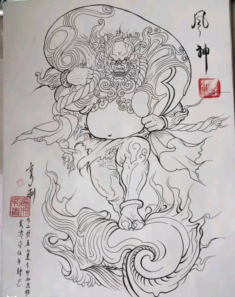 当前位置: 首页 >内蒙古呼和浩特市纹身店-亨利刺青工作室纹身图案>风神纹身图片_背部手臂新传统纹身图案