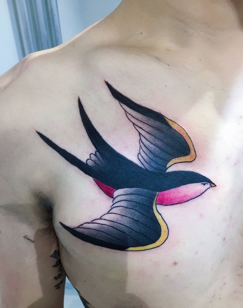 当前位置: 首页 >内蒙古包头市纹身店-愿纹奇身纹身图案>燕子纹身图片_胸部Old School纹身图案