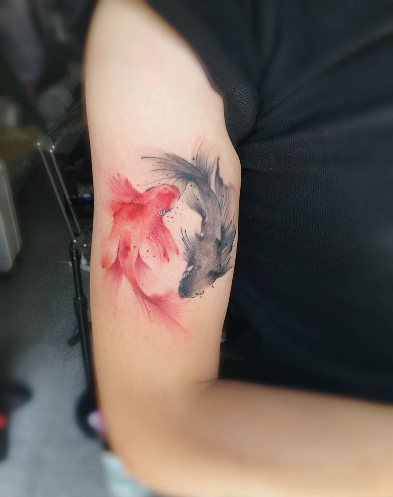 水墨锦鲤纹身图片_手臂水墨纹身图案