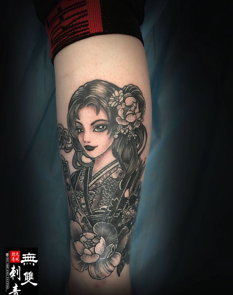 当前位置: 首页 >内蒙古呼和浩特市纹身店-亨利刺青工作室纹身图案>仕女图遮盖纹身图片_腿部纹身图案