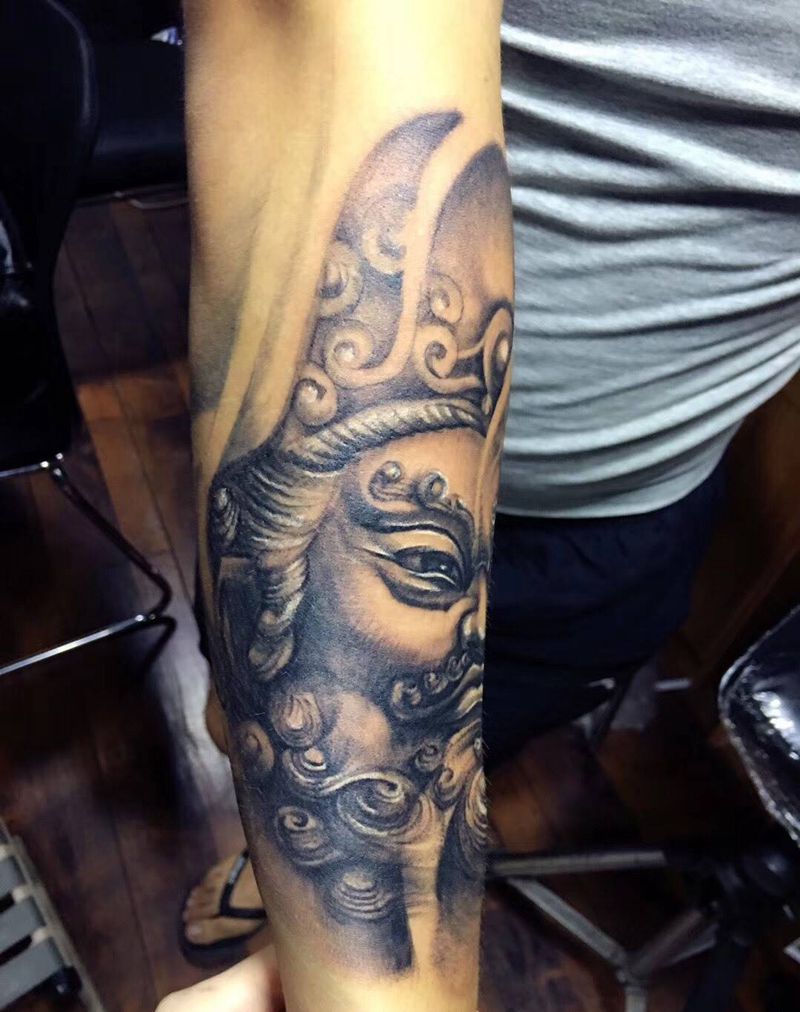 当前位置: 首页 >内蒙古包头市纹身店-愿纹奇身纹身图案>天王纹身图片_传统人物手臂手稿纹身图案