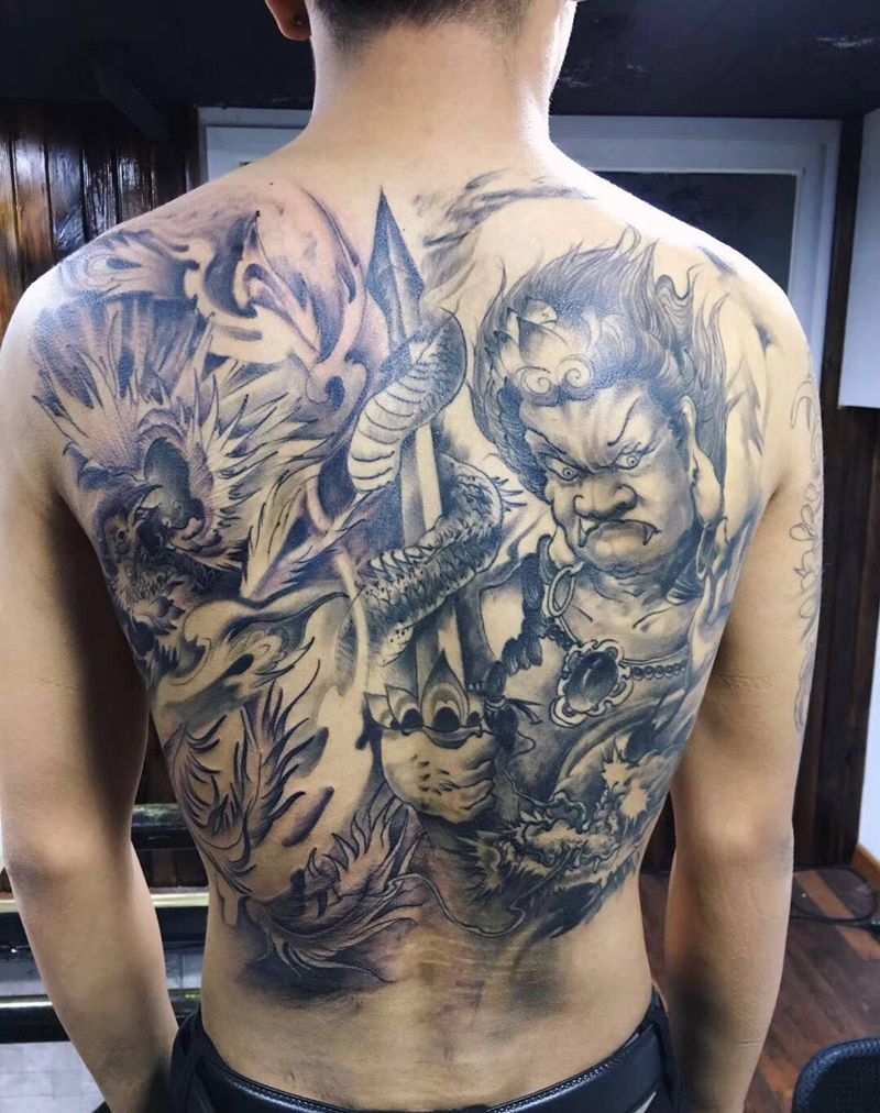 当前位置: 首页 >内蒙古包头市纹身店-愿纹奇身纹身图案>凤凰vs冥王纹身图片_传统人物动物背部手稿纹身图案