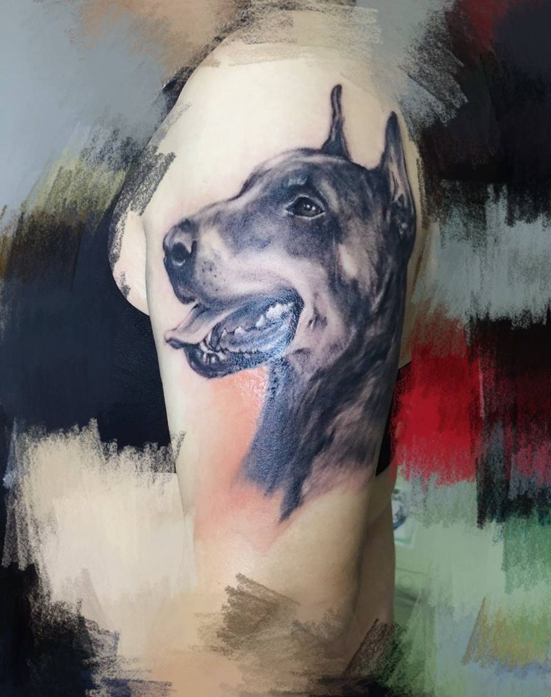 当前位置: 首页 >内蒙古包头市纹身店-愿纹奇身纹身图案>杜宾纹身图片_欧美动物成品肩部纹身图案