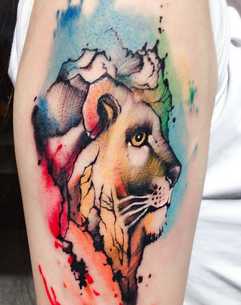 水彩小狮子纹身图片
