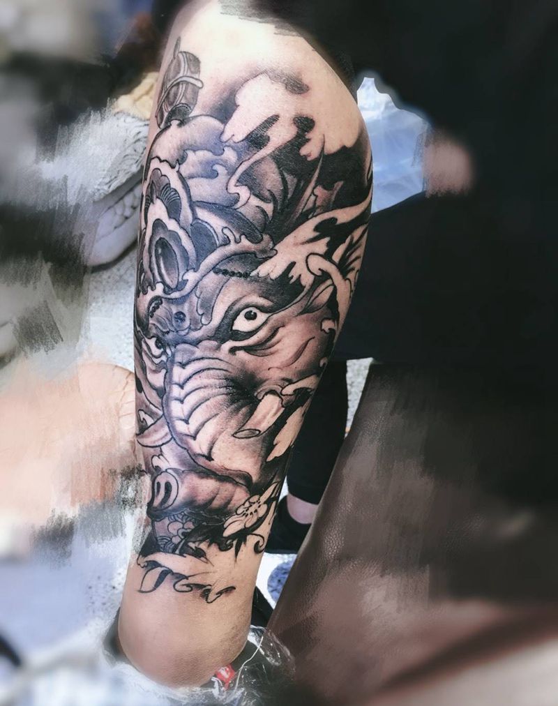 • T网红王老大花腿龙纹身图片_腿部新传统纹身图案