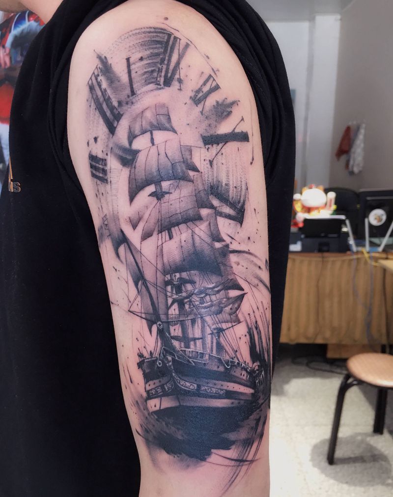 当前位置: 首页 >内蒙古包头市纹身店-愿纹奇身纹身图案>帆船⛵启航纹身图片_手臂欧美写实帆船纹身图案