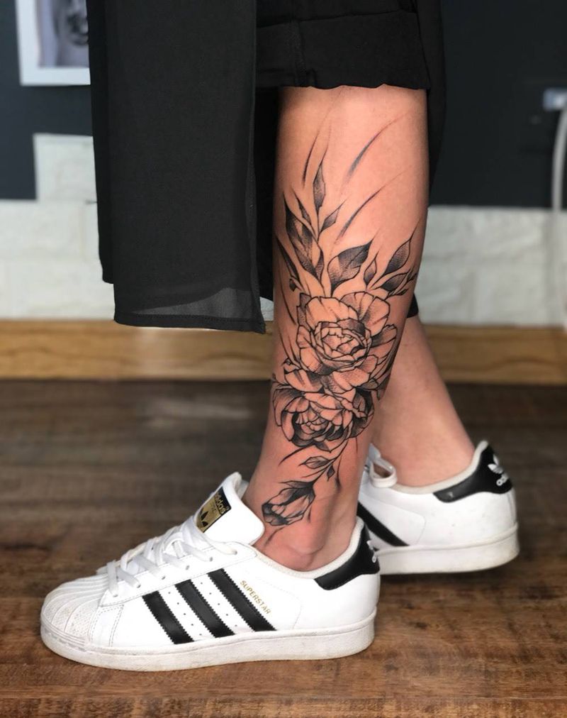 • T网红王老大花腿龙纹身图片_腿部新传统纹身图案