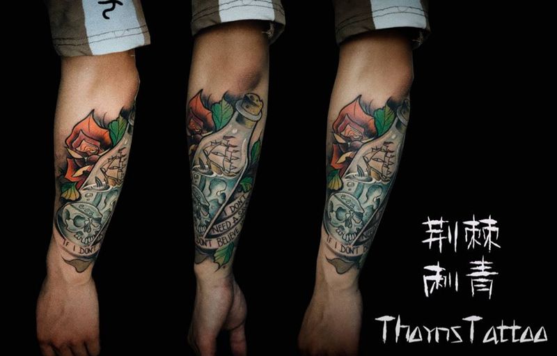 当前位置: 首页 >内蒙古呼和浩特市纹身店-杜樂DOL.TATTOO纹身图案>瓶纹身图片