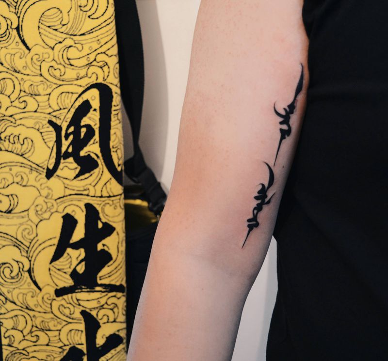 当前位置: 首页 >内蒙古呼和浩特市纹身店-杜樂DOL.TATTOO纹身图案>自由纹身图片_手臂花体字纹身图案