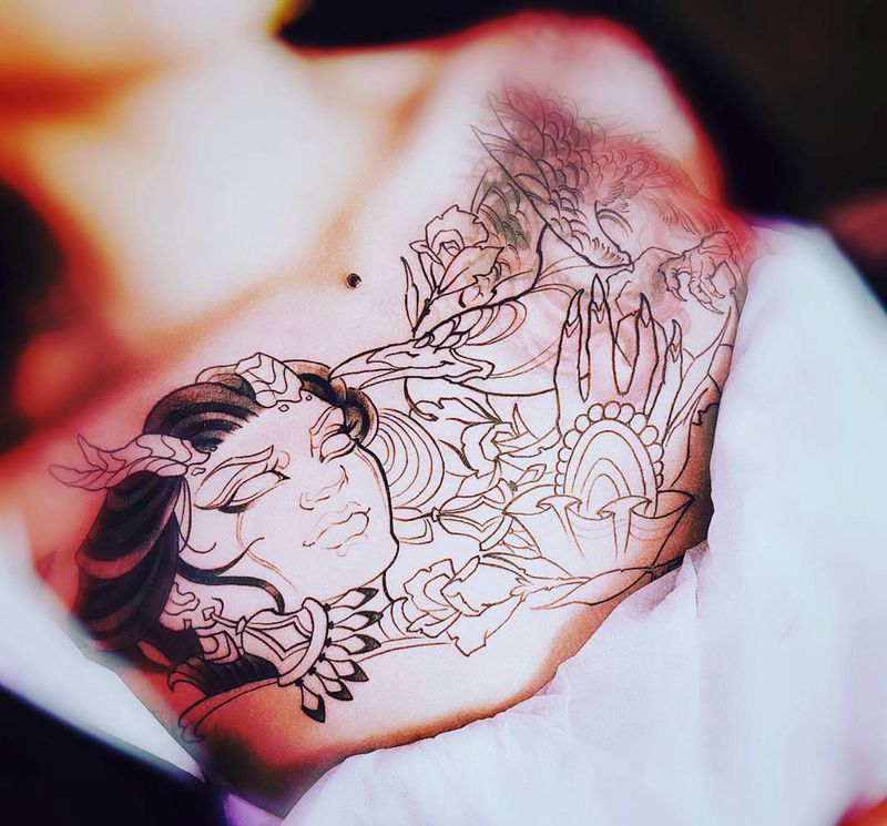 • 女性大花胸纹身_43张霸气漂亮的女性大花胸纹身图案作品
