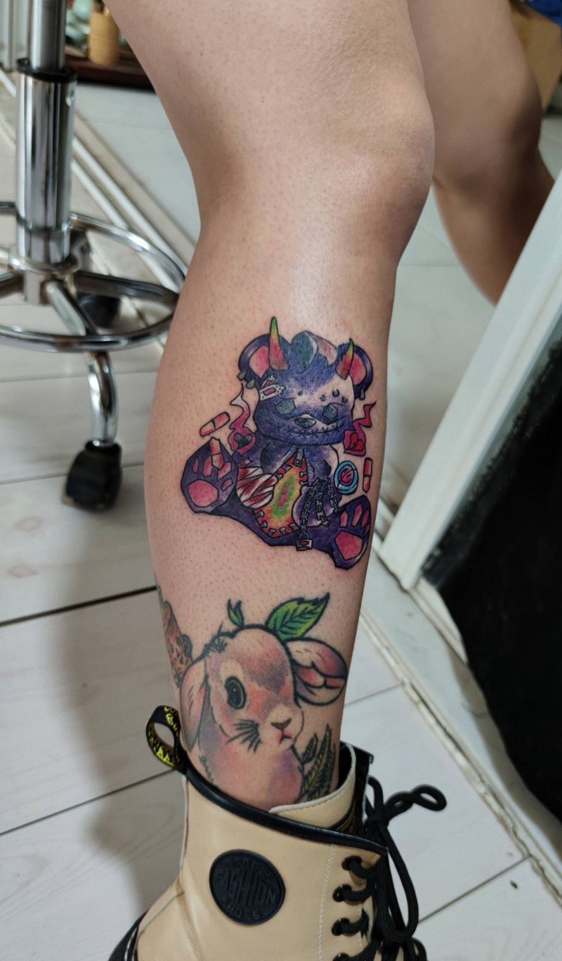 当前位置: 首页 >内蒙古呼和浩特市纹身店-點墨刺青纹身图案>暗黑熊纹身图片_腿部New School暗黑彩色纹身图案